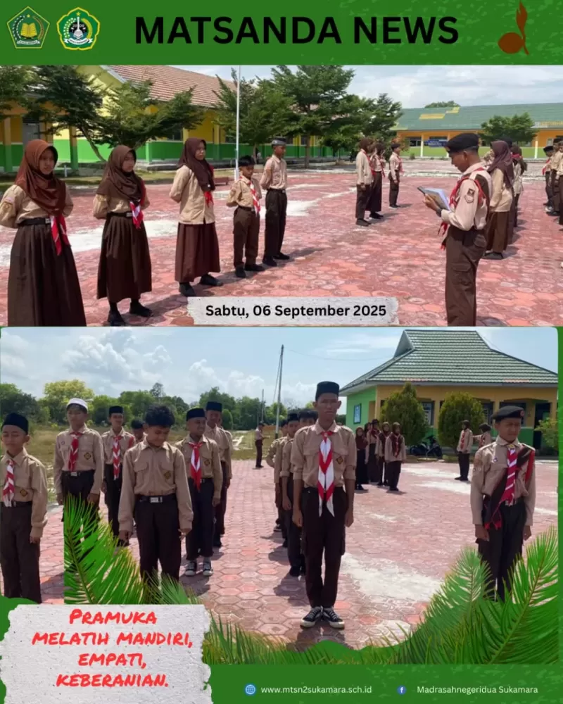 Kegiatan Pramuka merupakan ekstrakurikuler wajib yang ada di MTsN 2 Sukamara. kegiatan ini di jadwalkan setiap hari Sabtu.
