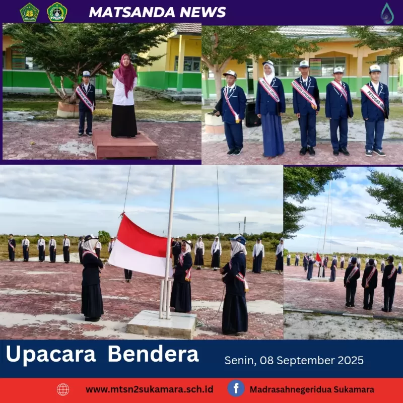 Rutinitas setiap hari Senin di MTsN 2 Sukamara pelaksanaan upacara bendera.