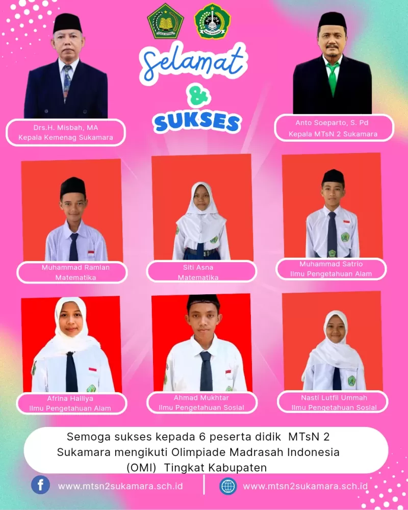 Enam peserta didik MTsN 2 Sukamara mengikuti seleksi OMI tingkat Kabupaten.