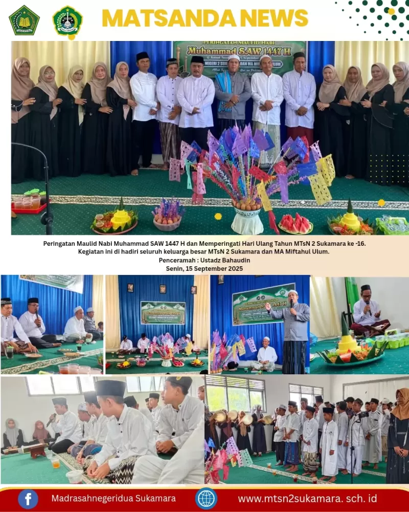 Peringatan Maulid Nabi Muhammad SAW 1447 H dan Memperingati Hari Ulang Tahun MTsN 2 Sukamara ke - 16