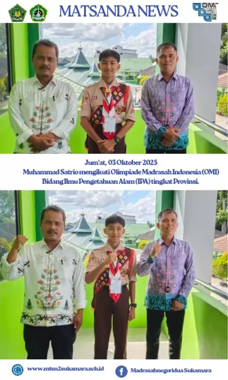 Muhammad Satrio kelas VIII MTsN 2 Sukamara mengikuti Olimpiade Madrasah Indonesia (OMI) Sains Bidang Ilmu Pengetahuan Alam (IPA) tahun 2025.