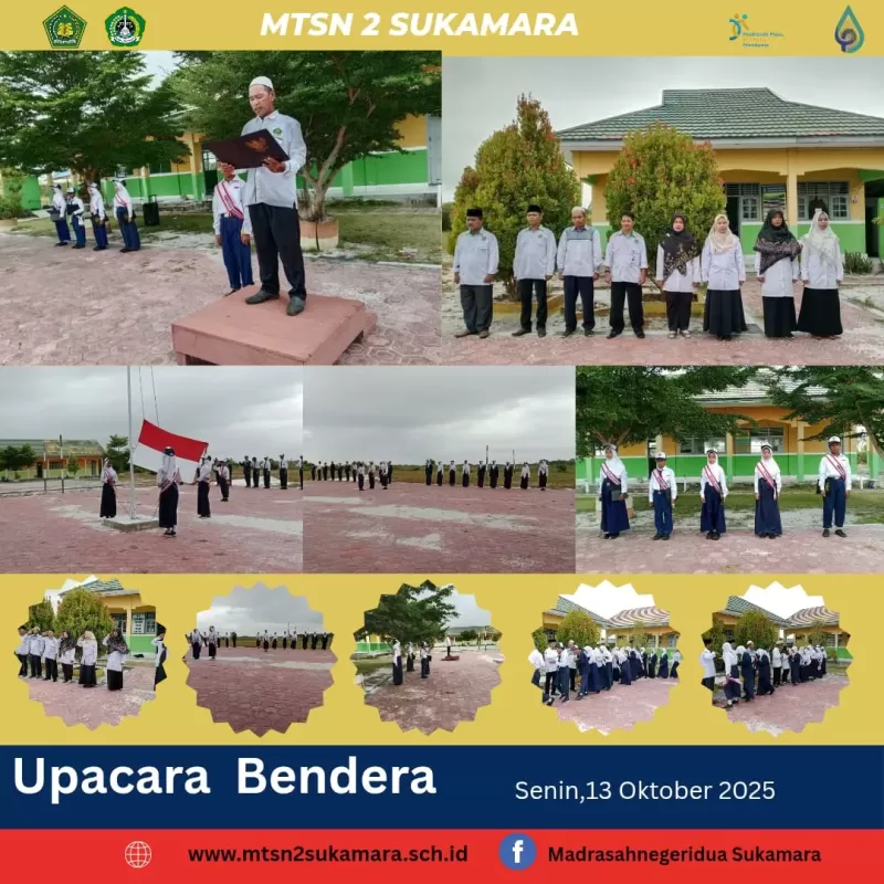 Pelaksanaan upacara bendera setiap hari Senin dengan petugas upacara kelas VII dan pembina upacara Bapak Abdul Wahab.
