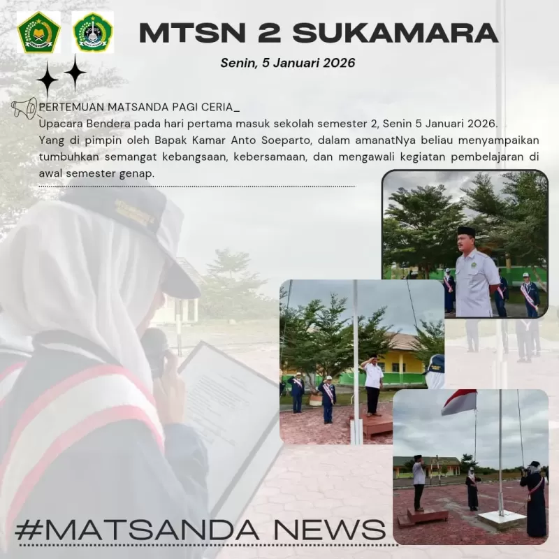 Kepala madrasah bapak Anto Soeparto,S.Pd Sebagai pembina upacara. Dalam amanatnya, Beliau menyampaikan pentingnya meningkatkan kedisiplinan, semangat belajar, Semangat kebangsaan, kebersamaan, serta sikap tanggung jawab dalam menghadapi semester genap. Peserta didik juga diingatkan untuk memenuhi tata tertib sekolah dan menjaga sikap positif selama proses pembelajaran berlangsung.
